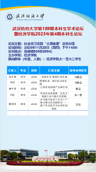 第189期本科生学术论坛暨经济学院2023第4期本科生论坛