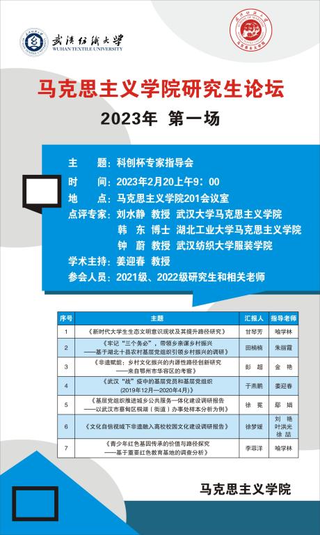 学术预告:第198期研究生学术论坛暨马克思主义学院2023年第1期研究生学术论坛