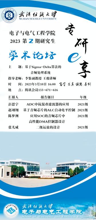 学术预告:第203期研究生学术论坛暨电子与电气工程学院2023年第2期研究生学术论坛