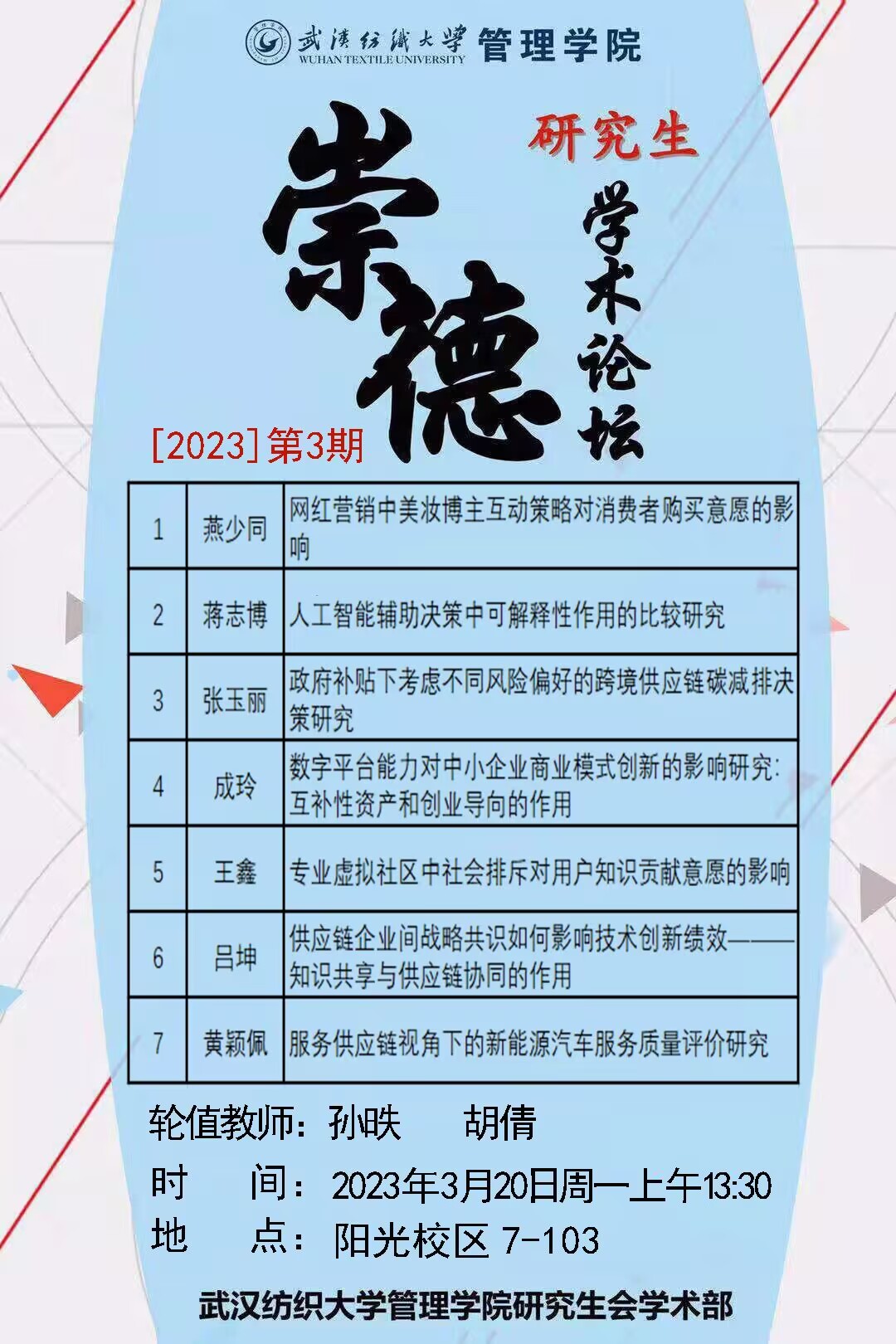 学术预告:第216期研究生学术论坛暨管理学院2023年第3期研究生学术论坛