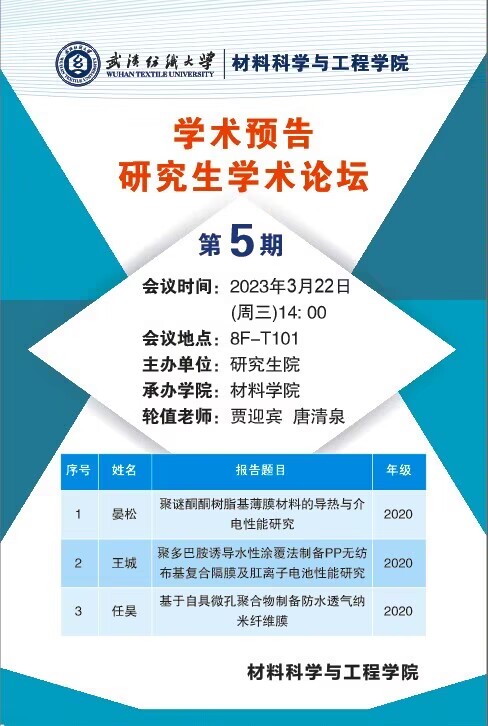 学术预告:第220期研究生学术论坛暨材料科学与工程学院2023年第5期研究生学术论坛
