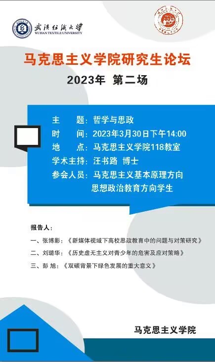 学术预告:第233期研究生学术论坛暨马克思主义学院2023年第2期研究生学术论坛