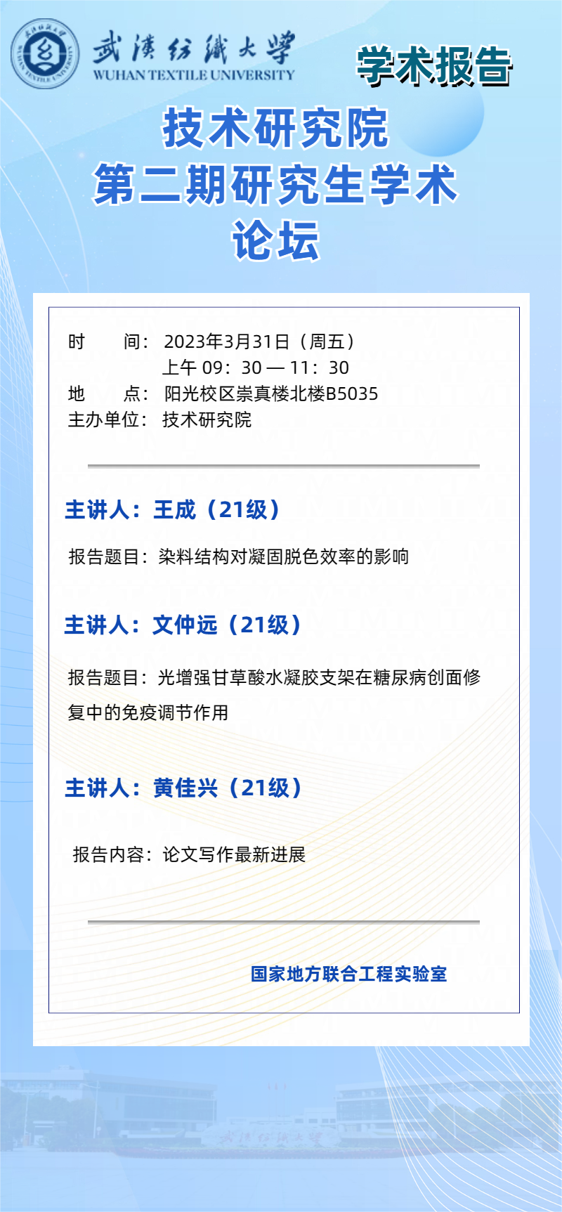 学术预告:第237期研究生学术论坛暨技术研究院2023年第2期研究生学术论坛