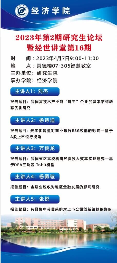 学术预告:第242期研究生学术论坛暨经济学院2023年第2期研究生学术论坛