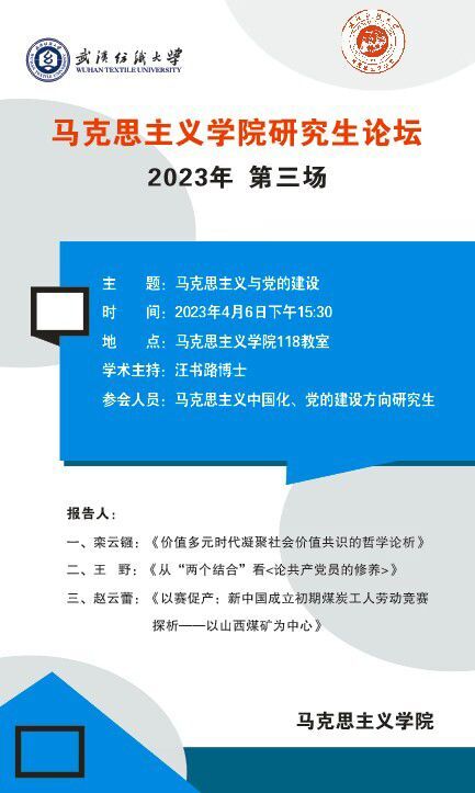 学术预告:第244期研究生学术论坛暨马克思主义学院2023年第3期研究生学术论坛