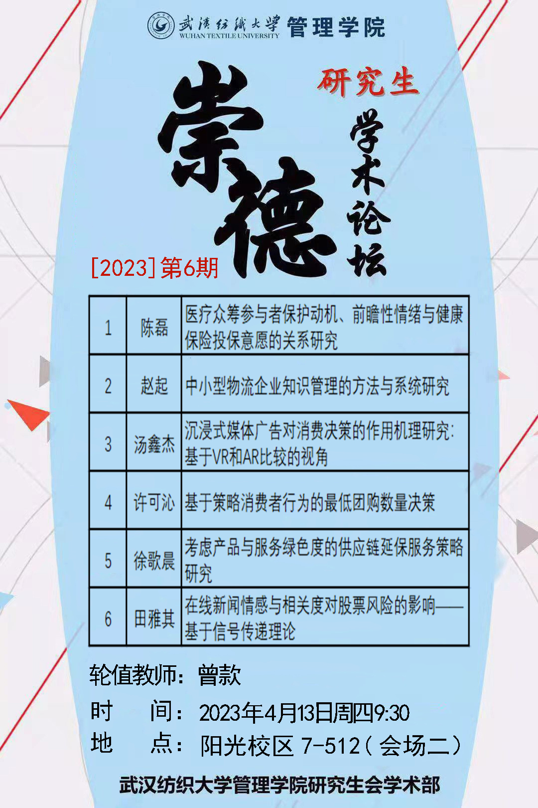 学术预告:第248期研究生学术论坛暨管理学院2023年第6期研究生学术论坛