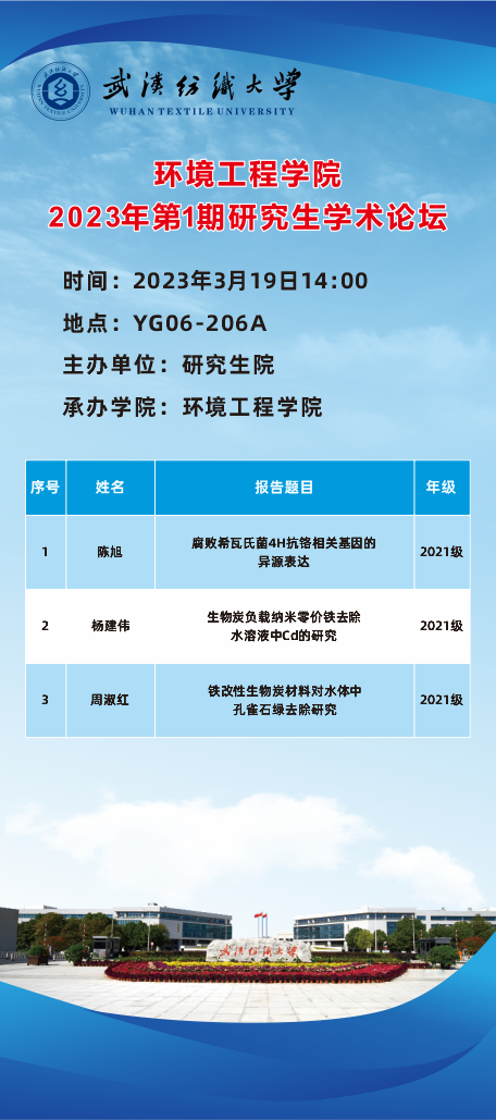 学术预告:第266期研究生学术论坛暨环境工程学院2023年第1期研究生学术论坛