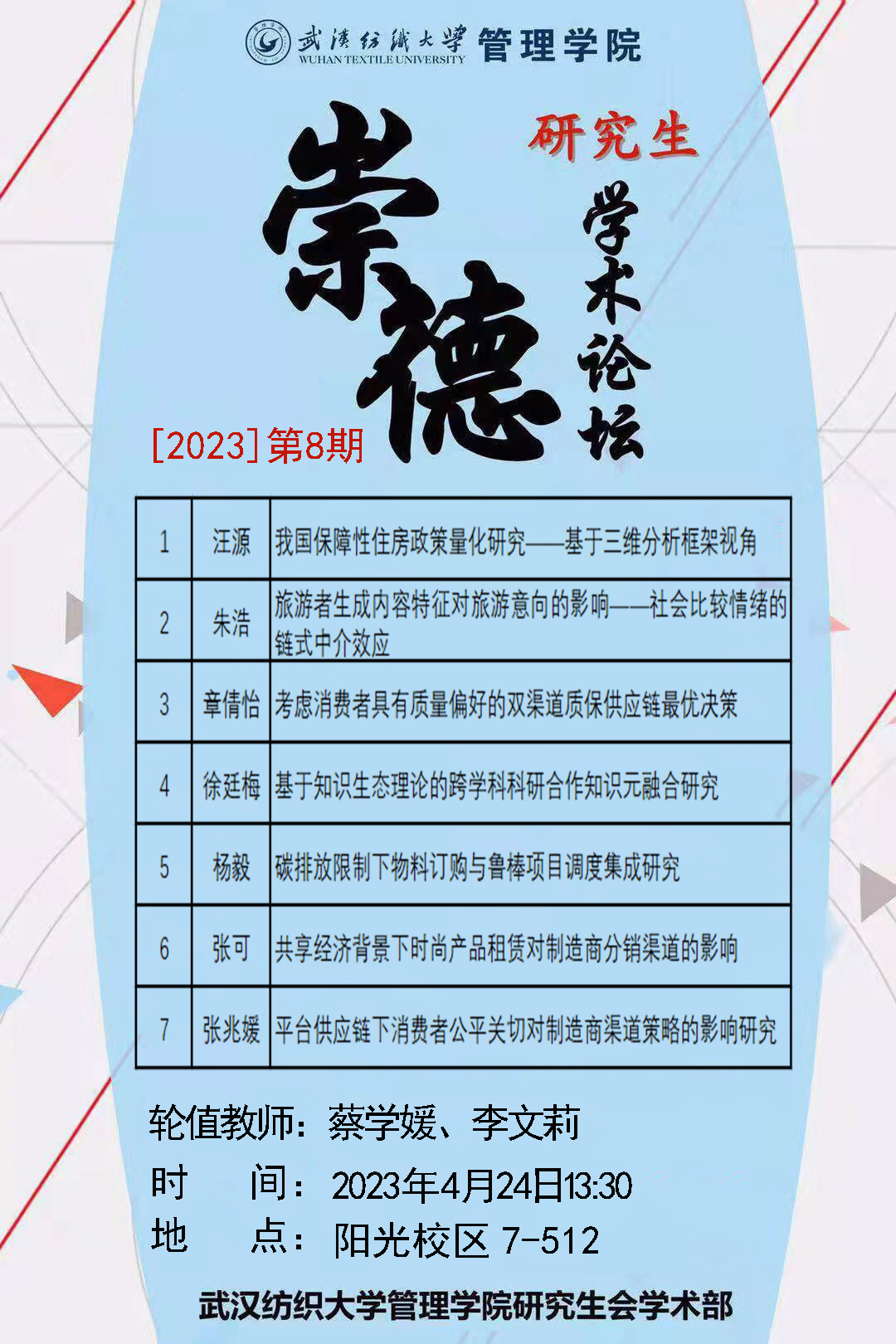 学术预告:第270期研究生学术论坛暨管理学院2023年第8期研究生学术论坛