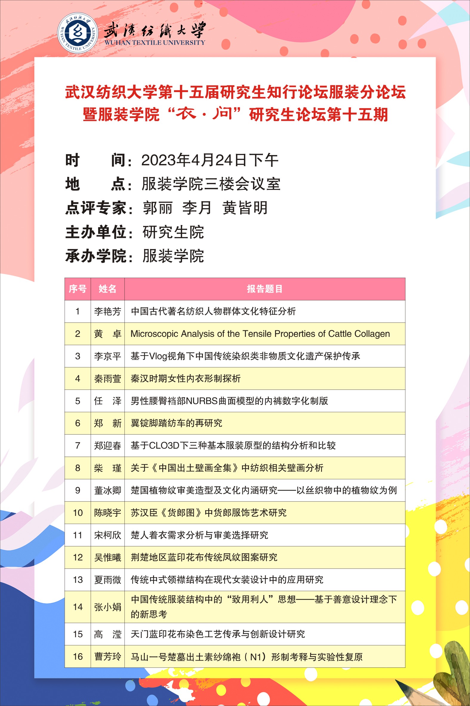 学术预告:第274期研究生学术论坛暨服装学院2023年第2期研究生学术论坛