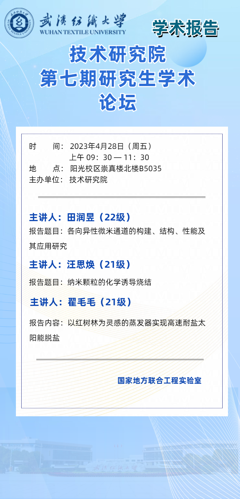 学术预告:第282期研究生学术论坛暨技术研究院2023年第7期研究生学术论坛