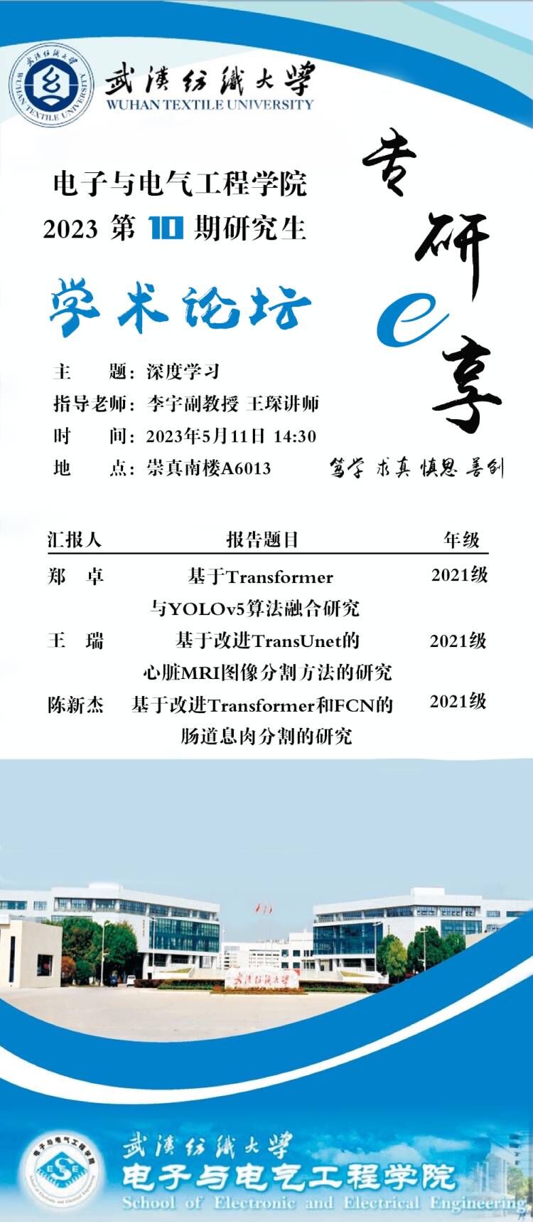 学术预告:第284期研究生学术论坛暨电子与电气工程学院2023年第10期研究生学术论坛
