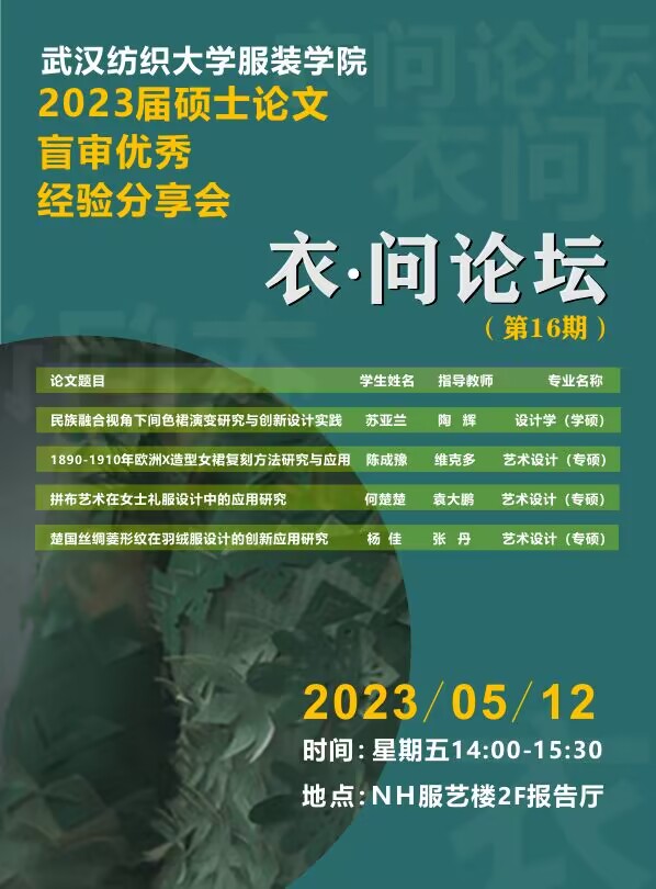 学术预告:第285期研究生学术论坛暨服装学院2023年第3期研究生学术论坛