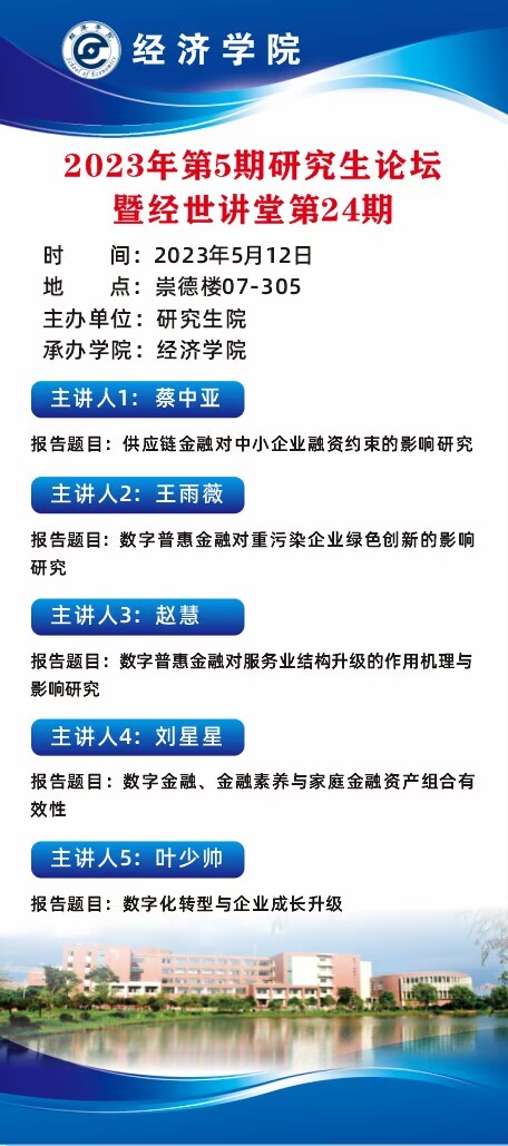 学术预告:第287期研究生学术论坛暨经济学院2023年第5期研究生学术论坛