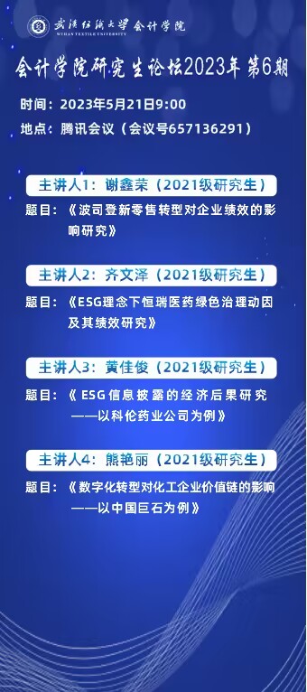 学术预告:第300期研究生学术论坛暨会计学院2023年第6期研究生学术论坛