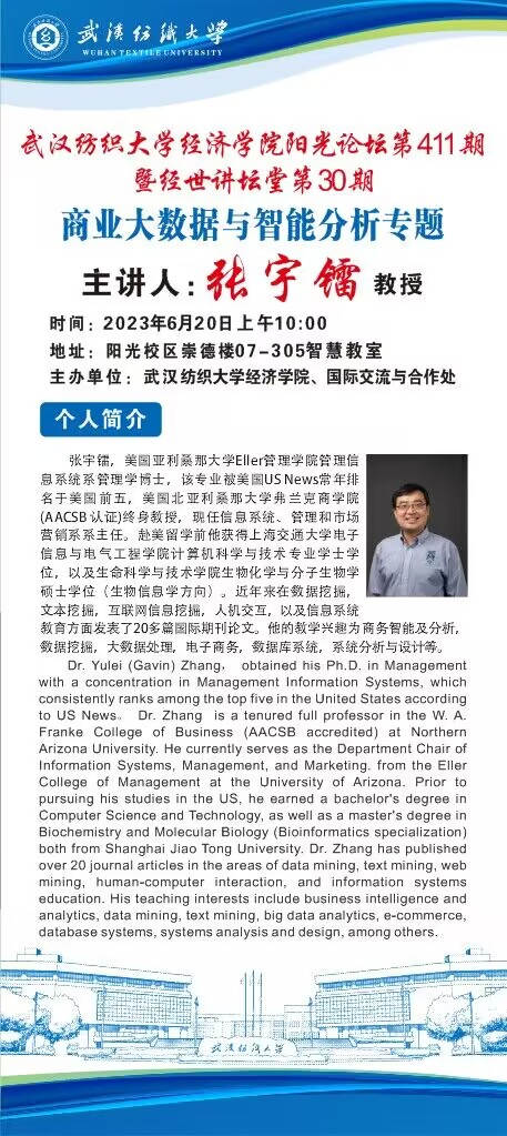 学术预告:第411期阳光论坛暨第30期经世讲堂-院15期