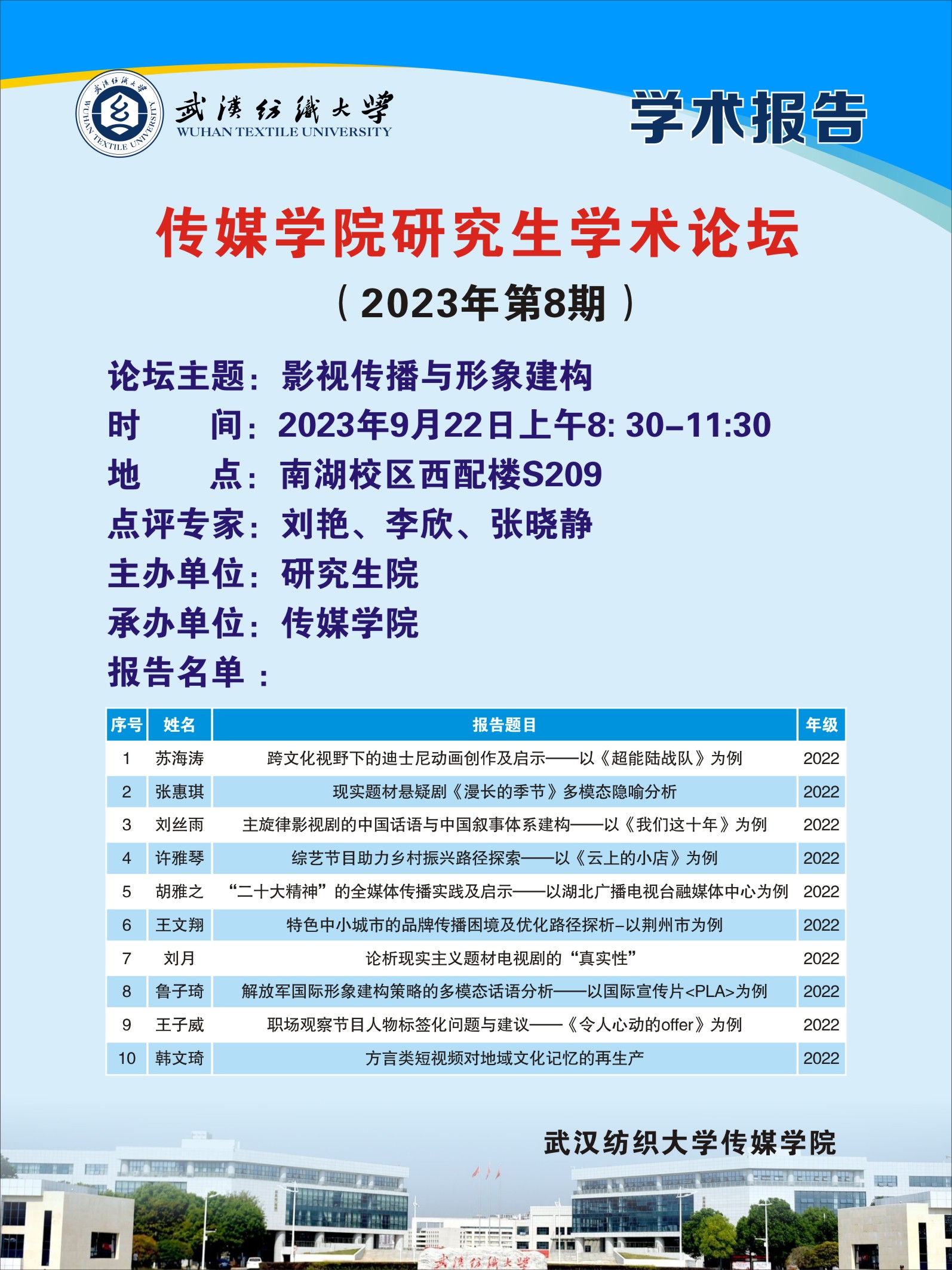学术预告:第335期研究生学术论坛暨传媒学院2023年第8期研究生学术论坛