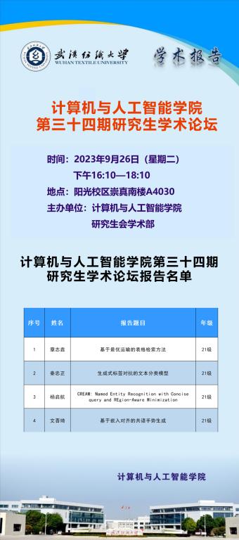 学术预告:第336期研究生学术论坛暨计算机与人工智能学院2023年第10期研究生学术论坛