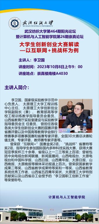 学术预告:第464期阳光论坛大学生创新创业大赛解读-以互联网+挑战杯为例