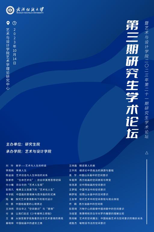 学术预告:第347期研究生学术论坛暨艺术与设计学院2023年第3期研究生学术论坛