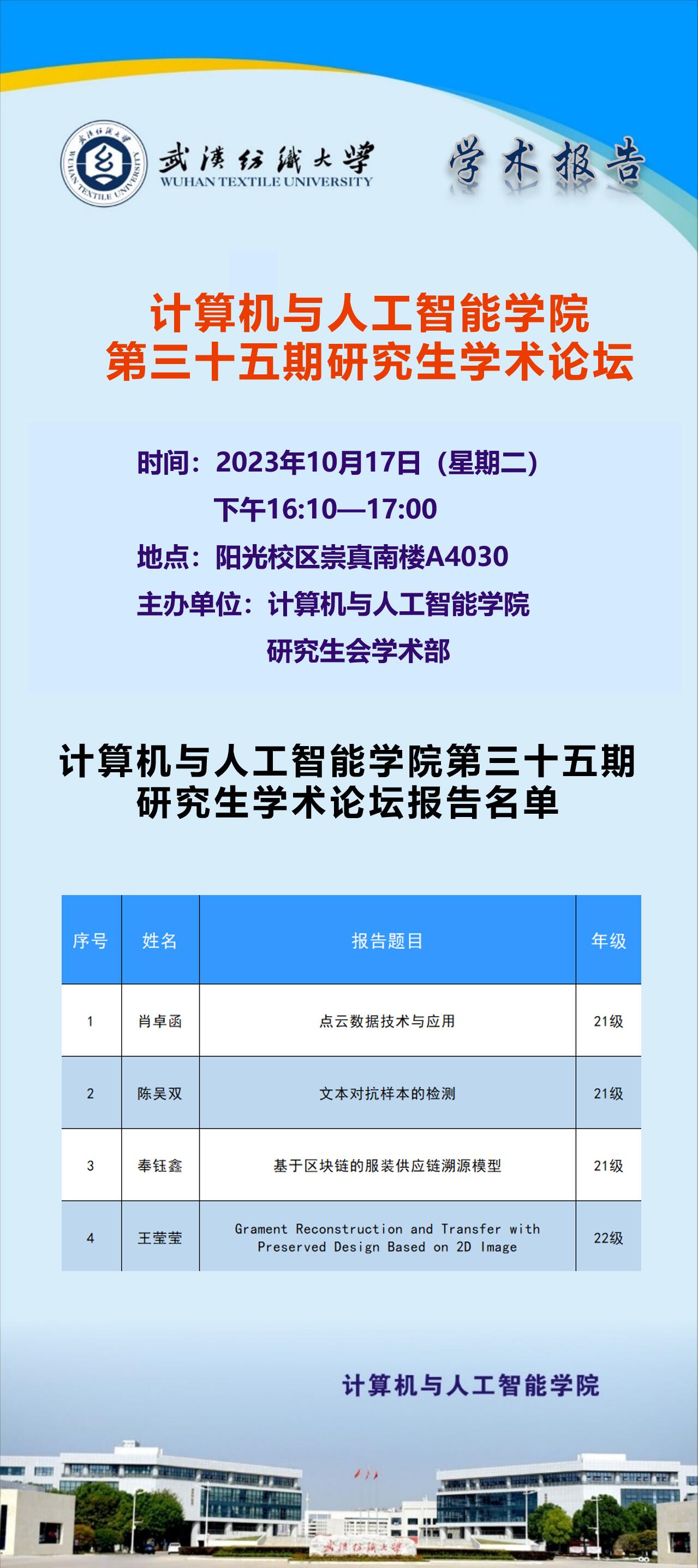 学术预告:第363期研究生学术论坛暨计算机与人工智能学院2023年第11期研究生学术论坛