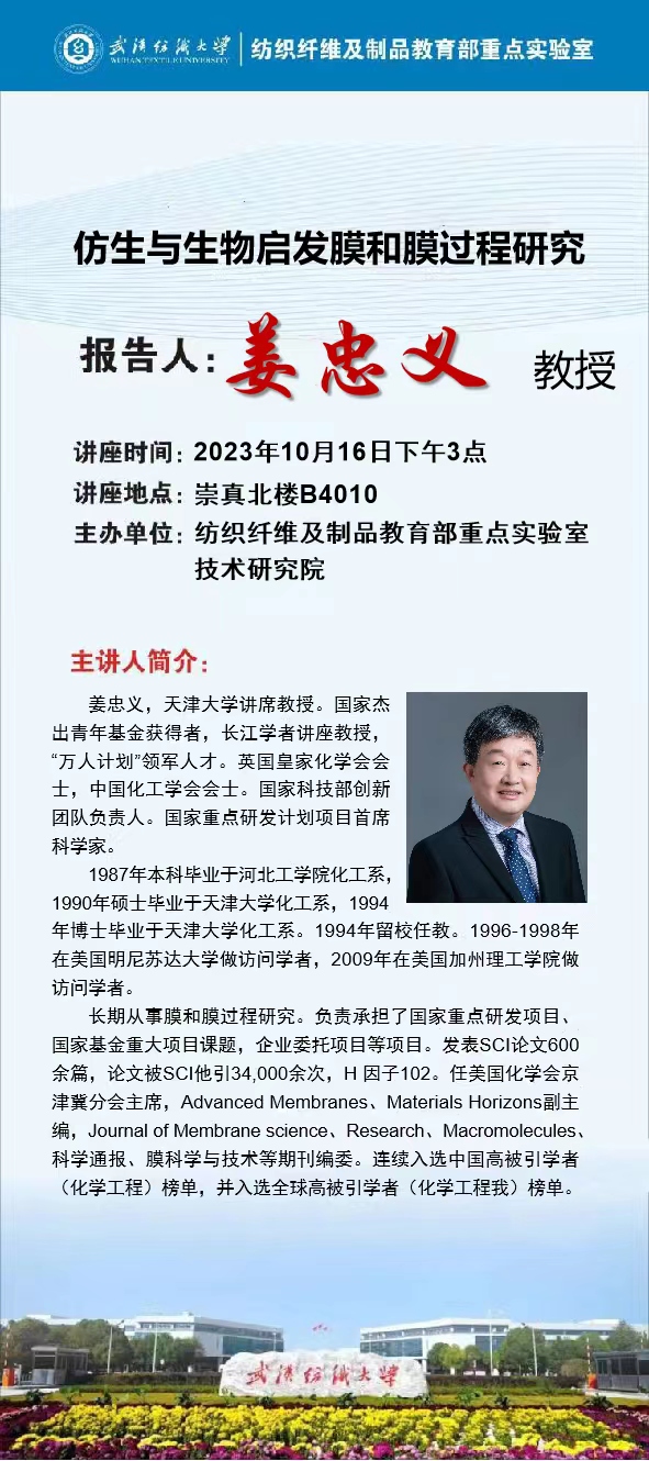 学术预告:第478期阳光论坛 仿生与生物启发膜和膜过程研究