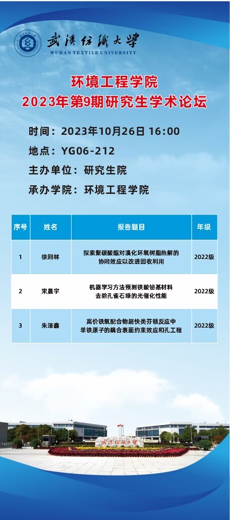 学术预告:第377期研究生学术论坛暨环境工程学院2023年第9期研究生学术论坛