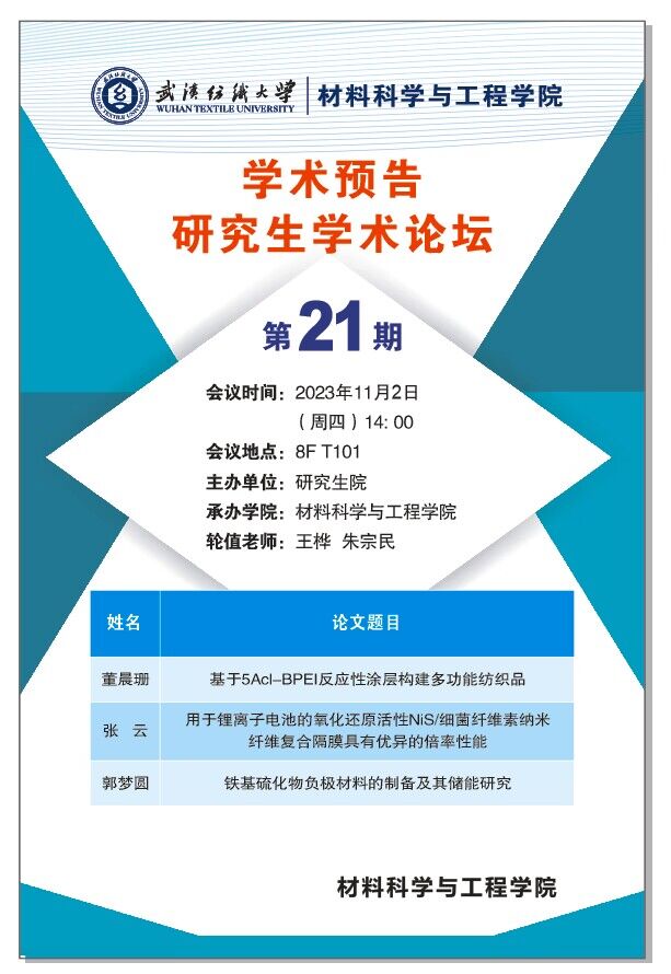 学术预告:第391期研究生学术论坛暨材料科学与工程学院2023年第21期研究生学术论坛