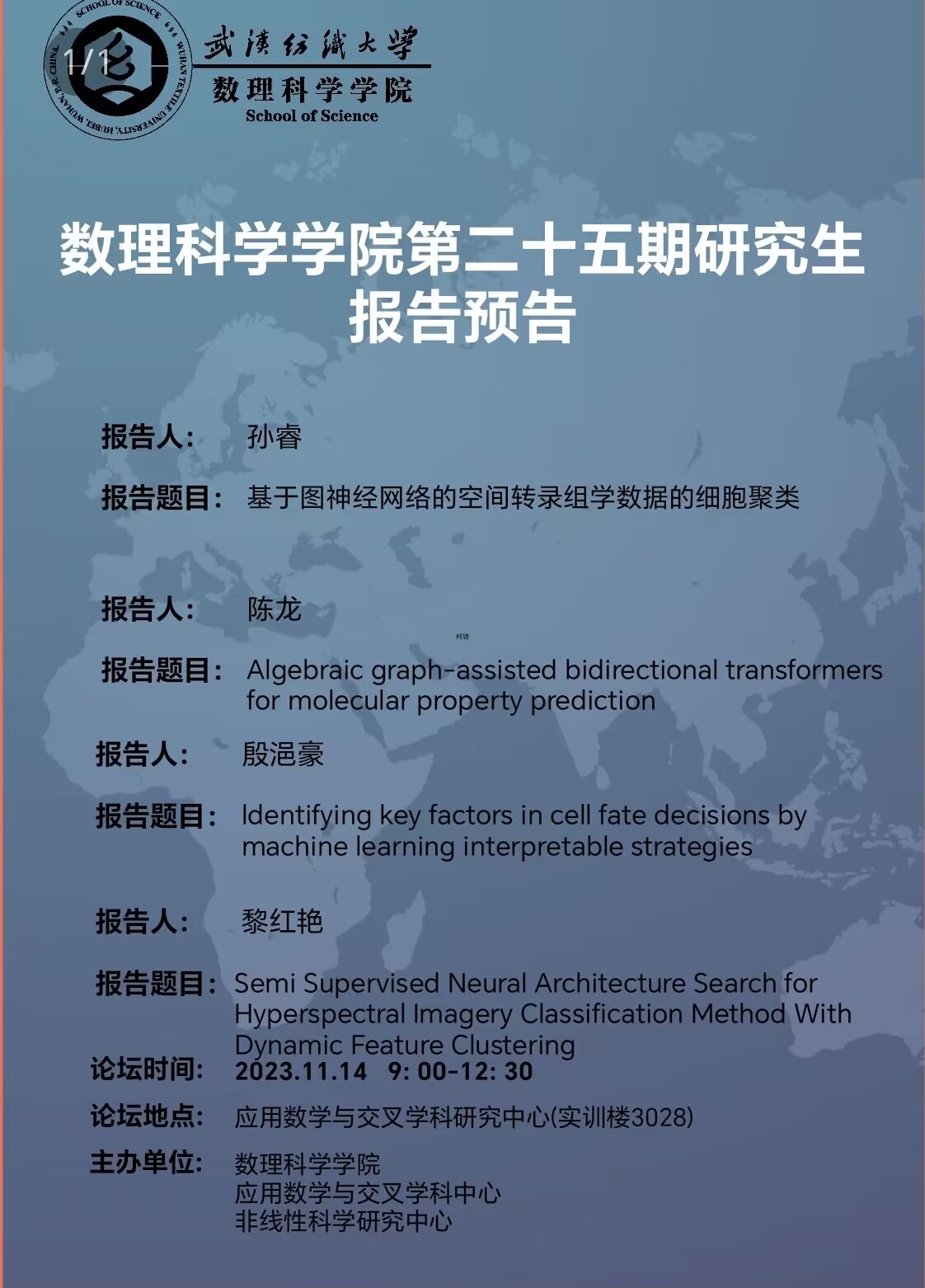 学术预告:第416期研究生学术论坛暨数理科学学院2023年第25期研究生学术论坛