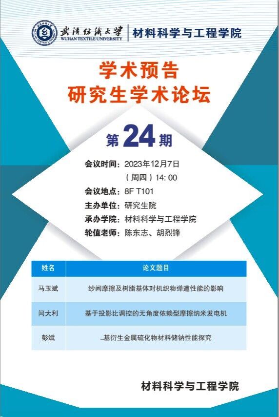 学术预告:第462期研究生学术论坛暨材料科学与工程学院2023年第24期研究生学术论坛